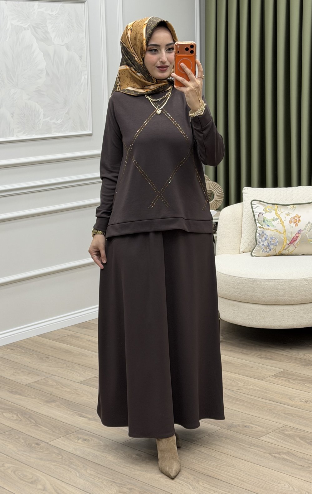 Irmak Etek Takım Kahverengi