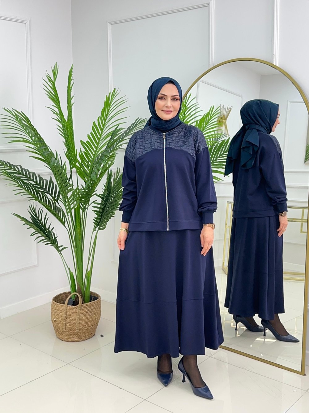 İZGİ ETEKLİ TAKIM - LACİVERT