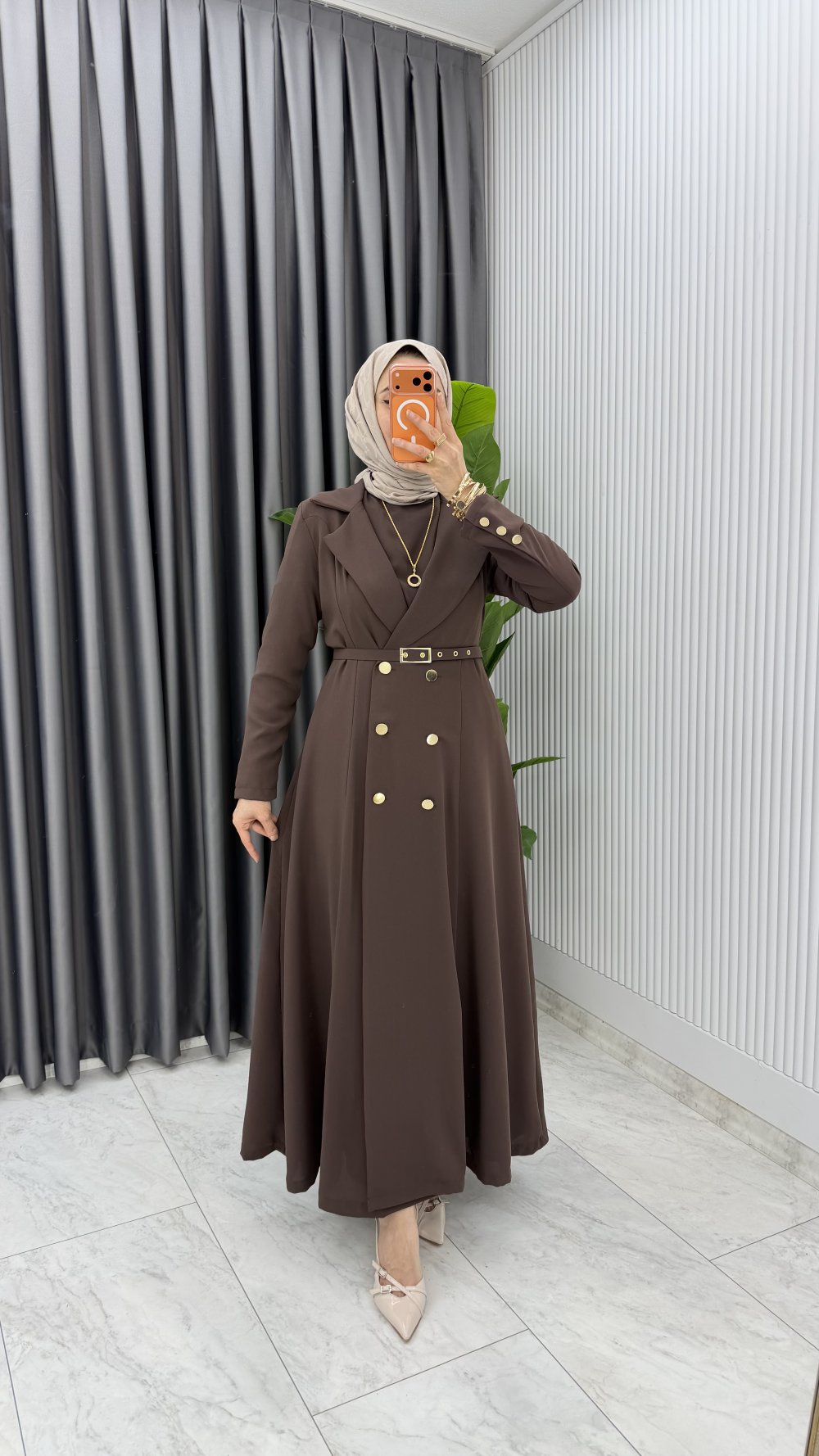 Kahve Premium Naz Jile Ferace Takım Tesettür Giyim