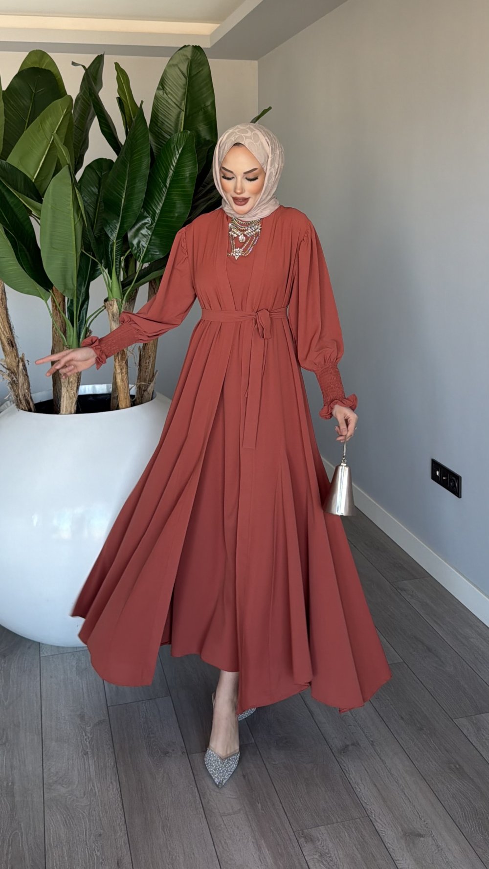 Kiremit Meşk Abaya Takım Tesettür Giyim