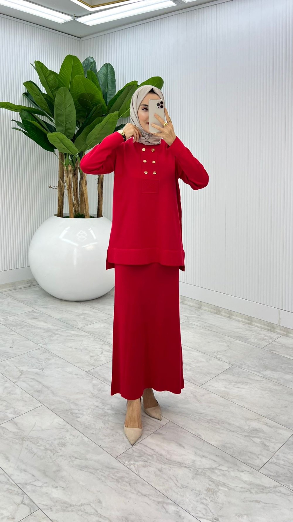 Tunik ön kısımda gold aspirin düğme detaylıdır