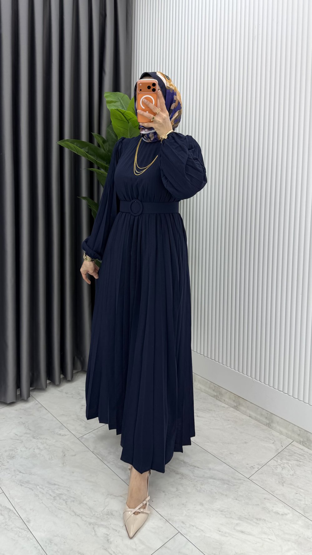 Lacivert Hifa Piliseli Elbise Tesettür Giyim