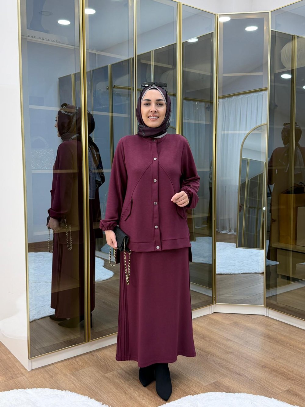 Tunik ön boy 70 cm, arka boy 80 cm’dir.