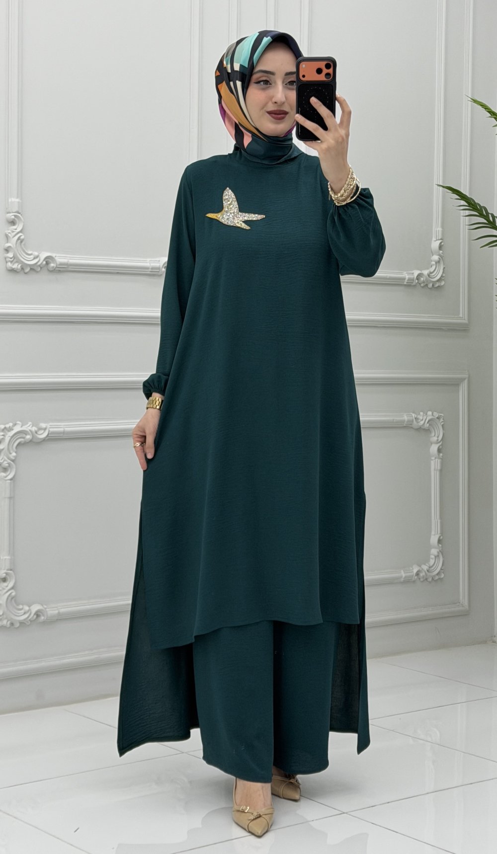 Melina Takım, hem iş hem de günlük hayatınızda rahatlıkla tercih edebileceğiniz çok yönlü bir parçadır. Şıklığı konforla buluşturan bu tasarım, sezonun en gözde modellerinden biri olacak!