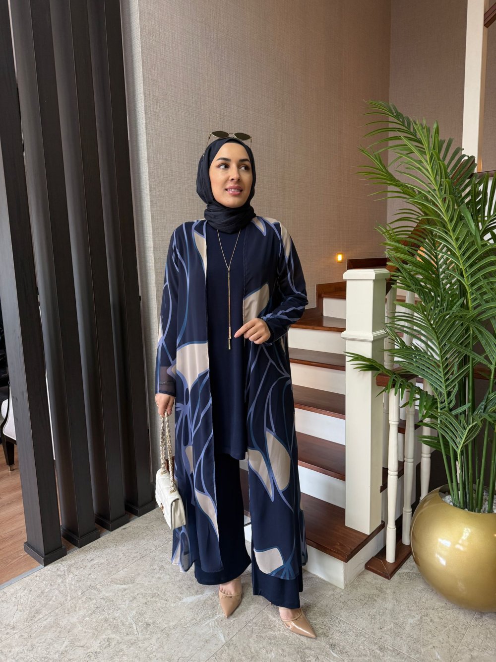 Dış kap dijital baskılı şifon kumaştır, 125 cm’dir.
