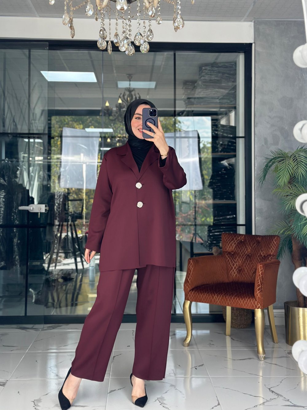 Modern Ceket Takım Bordo