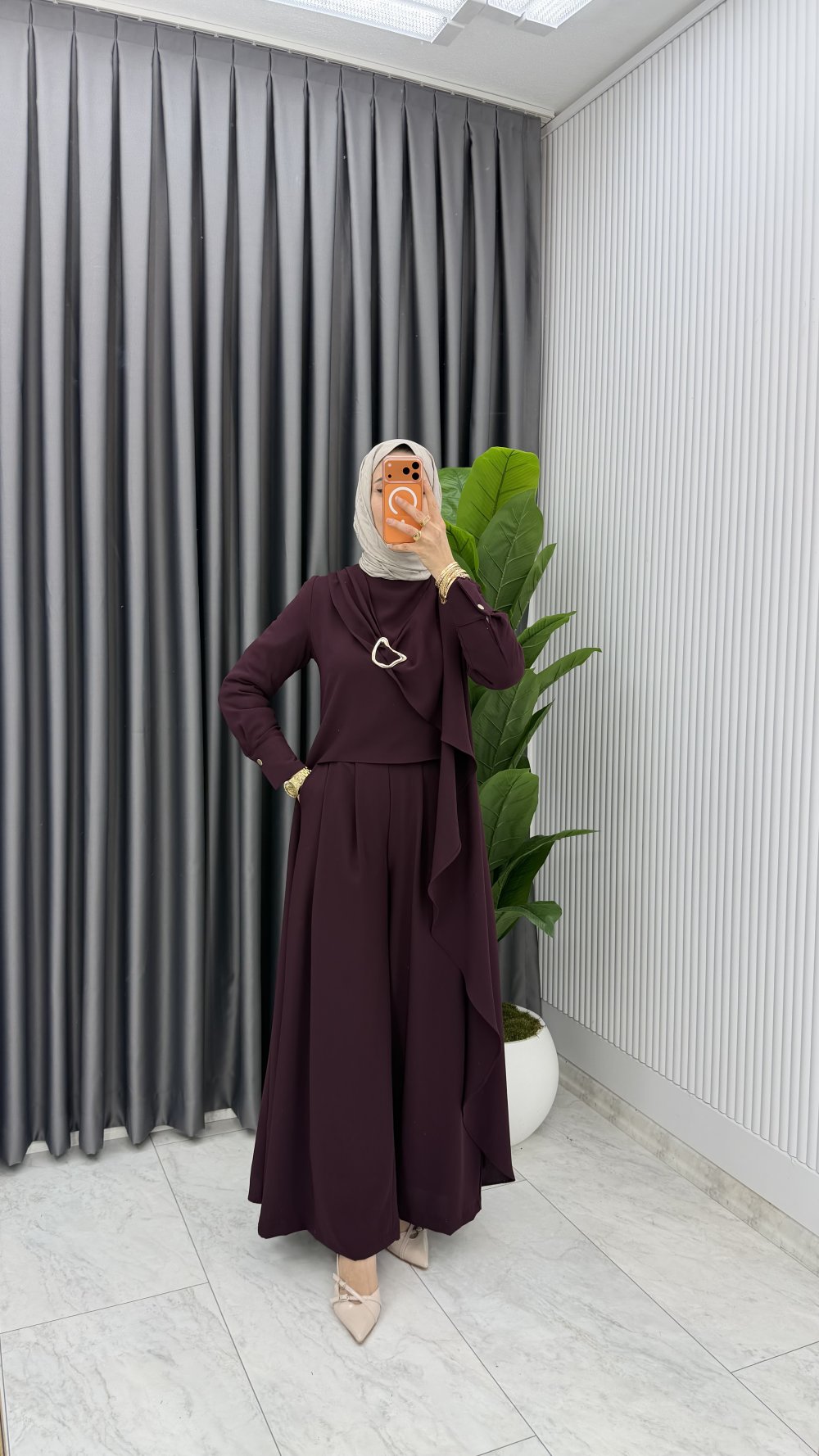 Mürdüm Premium Ahsen Pantolonlu Takım Tesettür Giyim