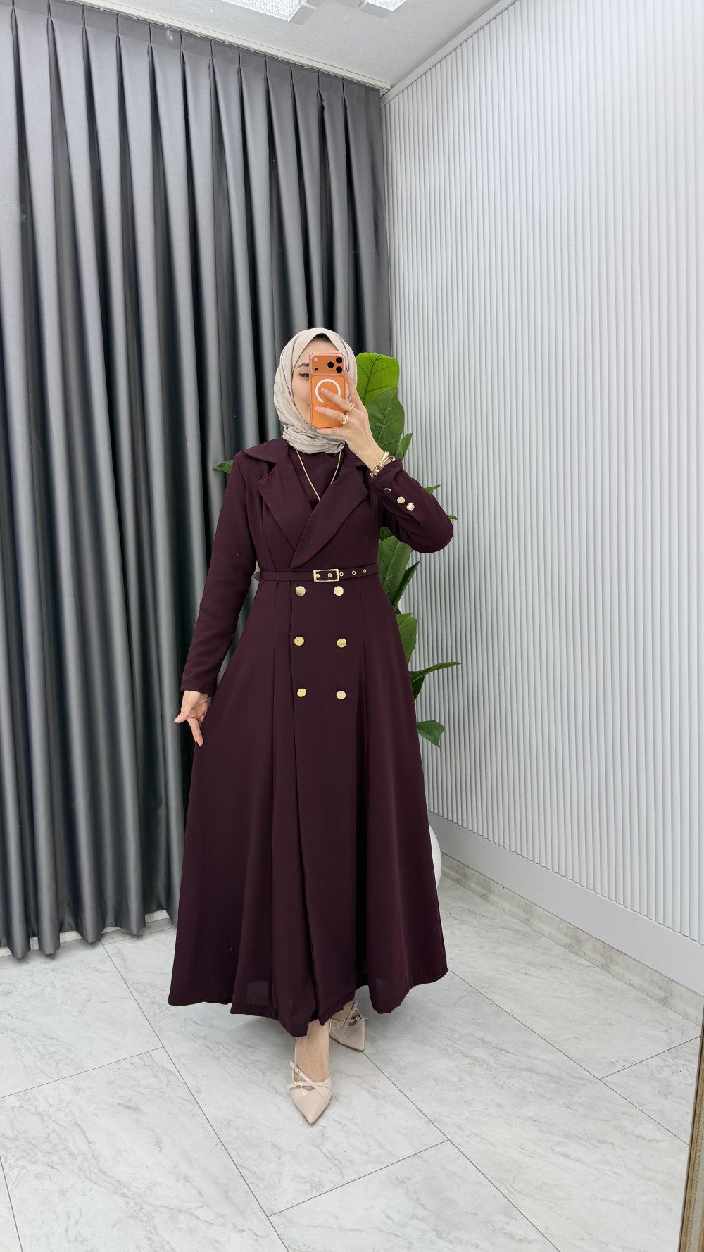 Mürdüm Premium Naz Jile Ferace Takım Tesettür Giyim