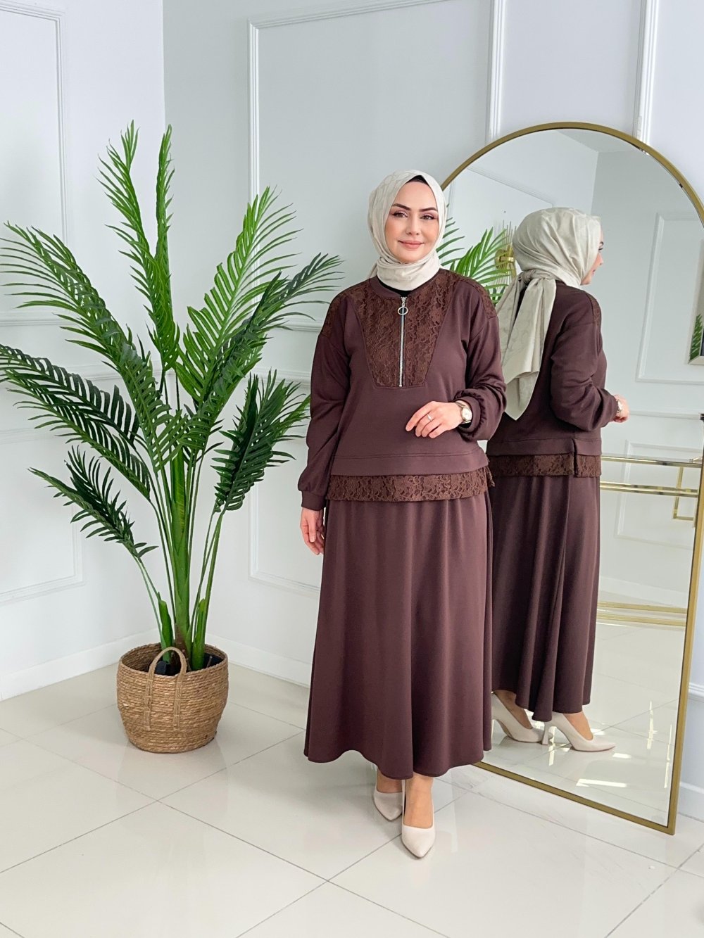 NAZAN ETEKLİ TAKIM - KAHVERENGİ
