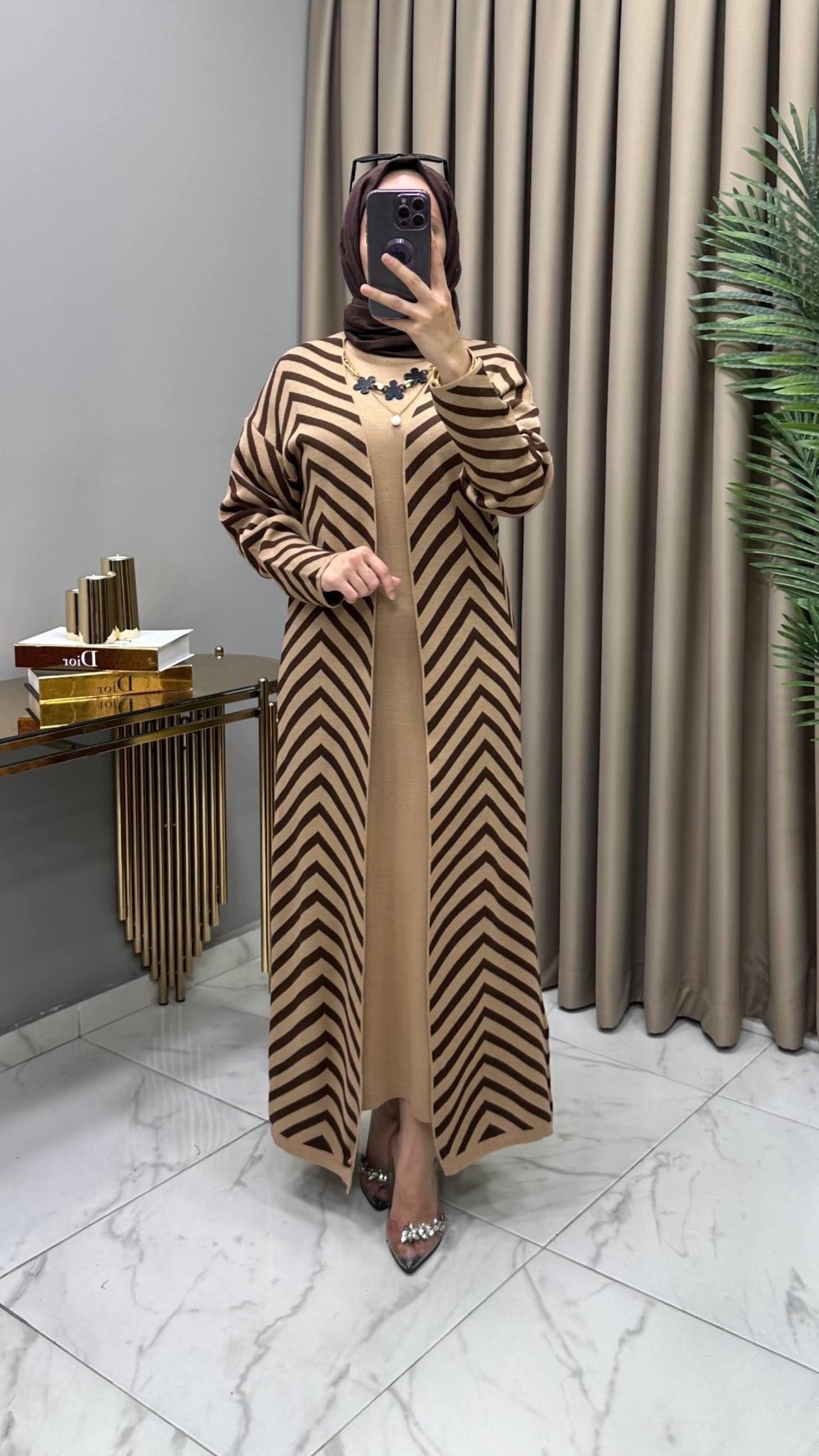 Sevde Hırka Kap Elbise Takım Taba