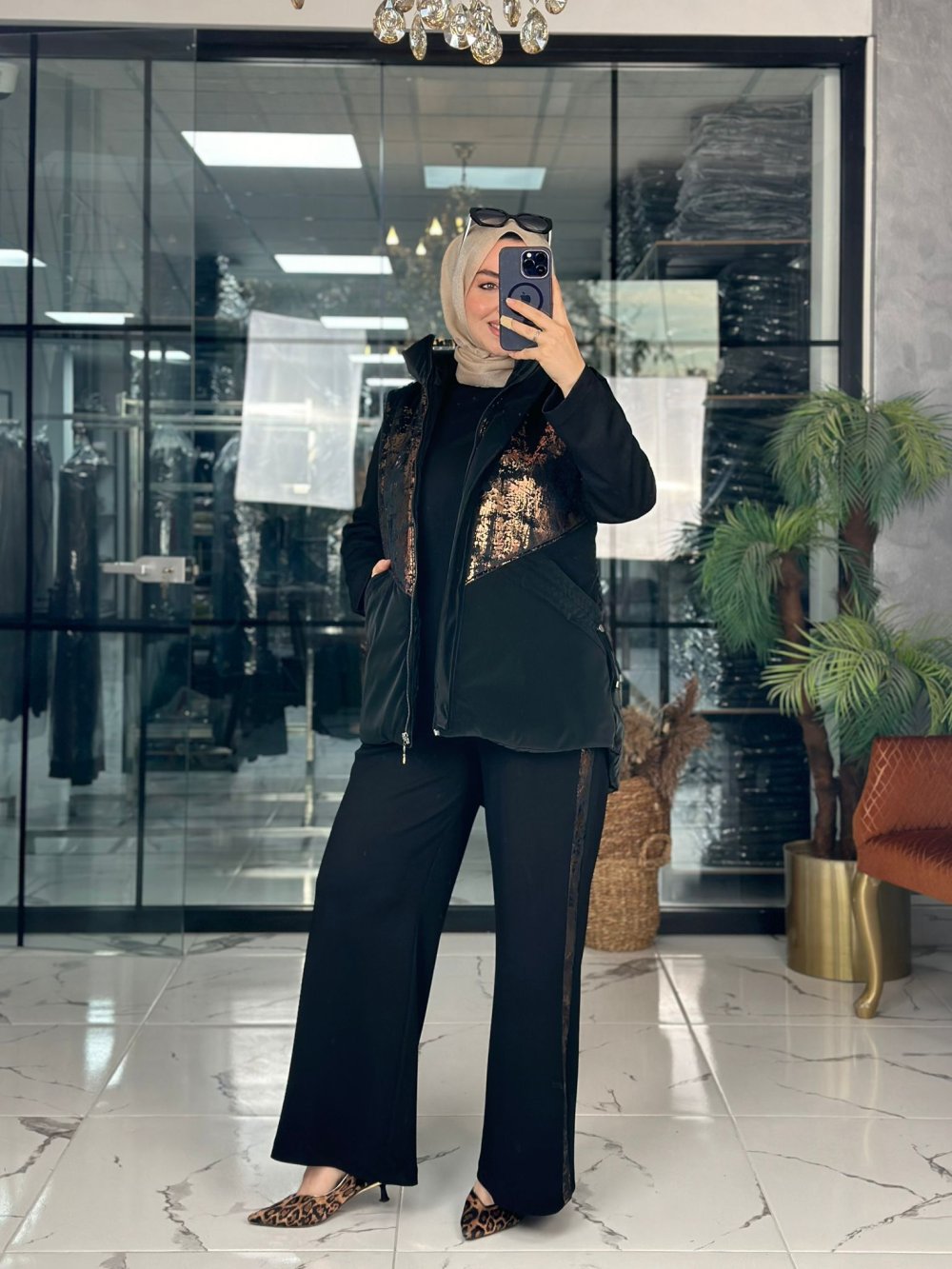 oysho Kumaş,Yelek Jakarlı Kapitone, Pantolon Beli Lastikli, Tunik Uzun Kolludur.