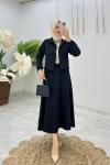 Petrol Neva Abaya Takım Tesettür Giyim