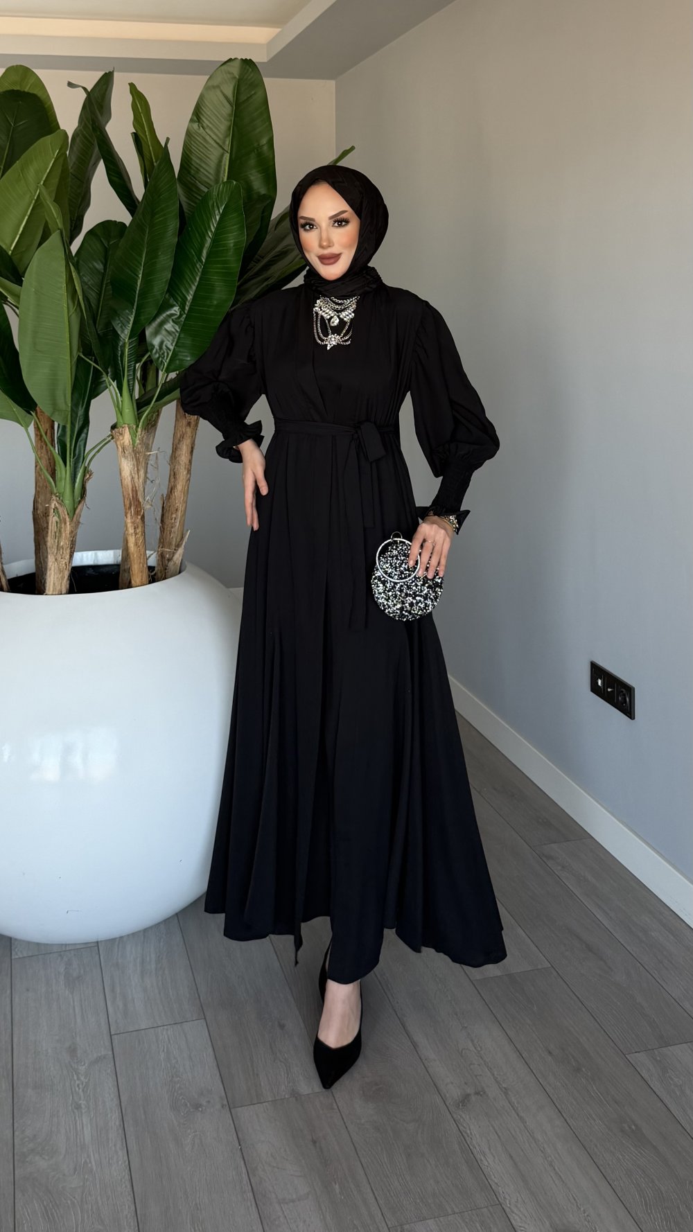 Siyah Meşk Abaya Takım Tesettür Giyim