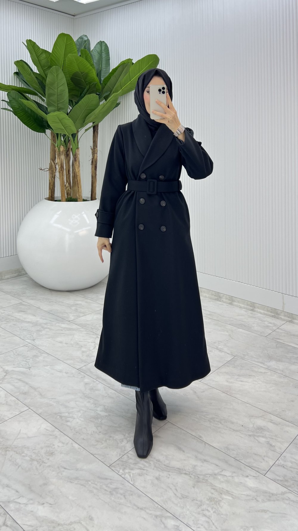 Siyah Premium Kaşe Kaban Tesettür Giyim