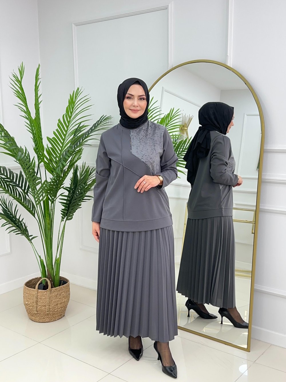 TUĞÇE ETEKLİ TAKIM - ANTRASİT