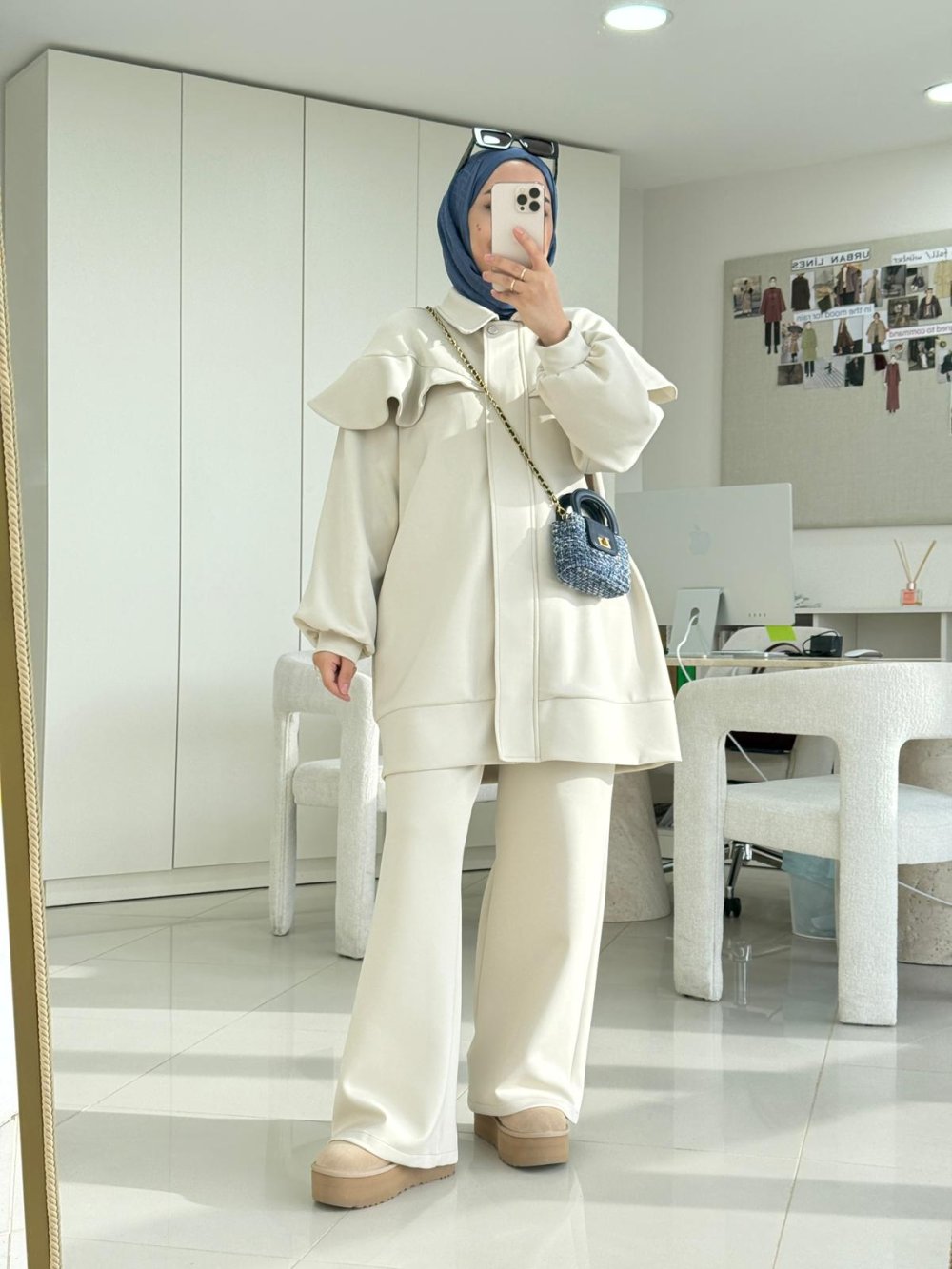 Tunik boy 85 cm’dir. Önden fermuarlı ve çıtçıt detayı mevcuttur.