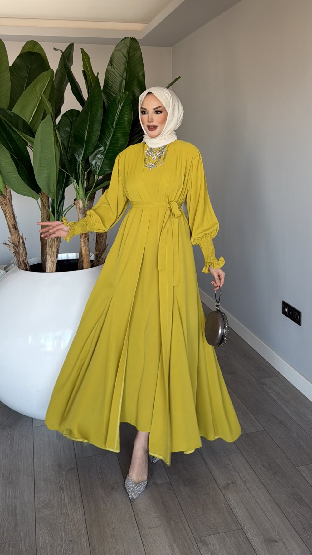 Yağyeşili Meşk Abaya Takım Tesettür Giyim